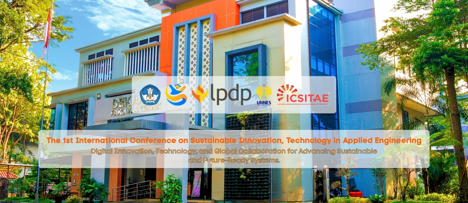 The 1st International Conference on Sustainable Innovation, Technology in Applied Engineering is an established annual forum held by Engineering Faculty, Universitas Negeri Semarang that convenes scholars, policymakers, international organizations and practitioners to advance research and practice in Sustainable Innovation in Applied Engineering which focuses on Digital Innovation, Technology, and Global Collaboration for Advancing Sustainable and Future-Ready Systems.